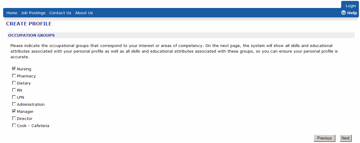 The Occupation Groups page opens. - Select the Occupation Groups that you are interested in working in.