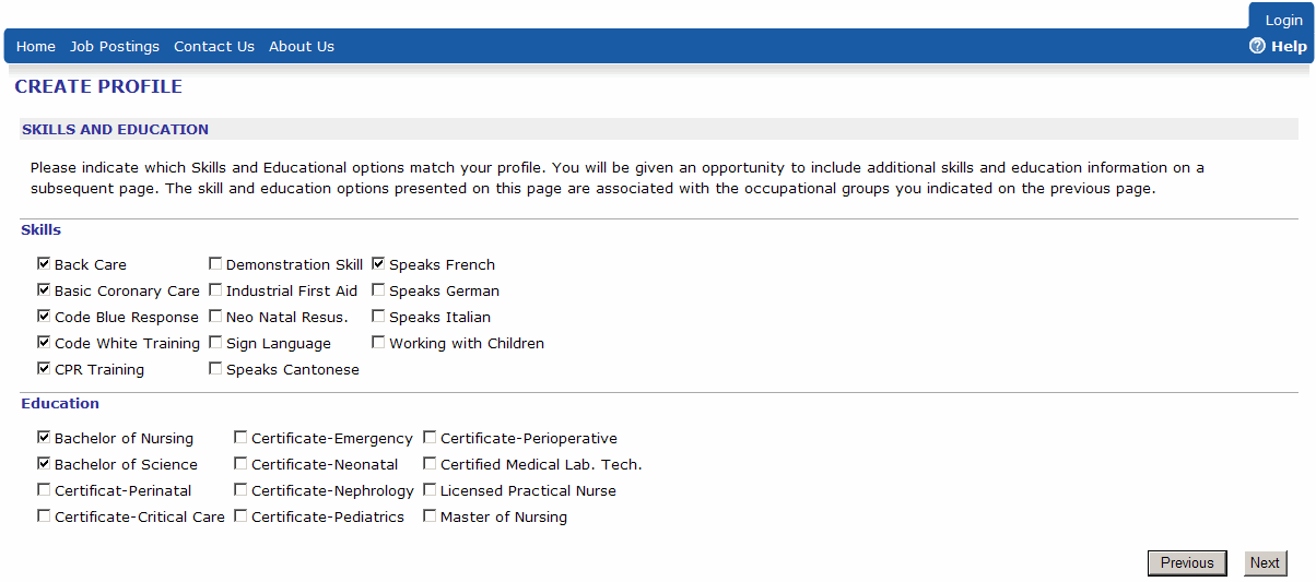 The Competencies page opens. - Select the Skill and Education attributes that apply to you.