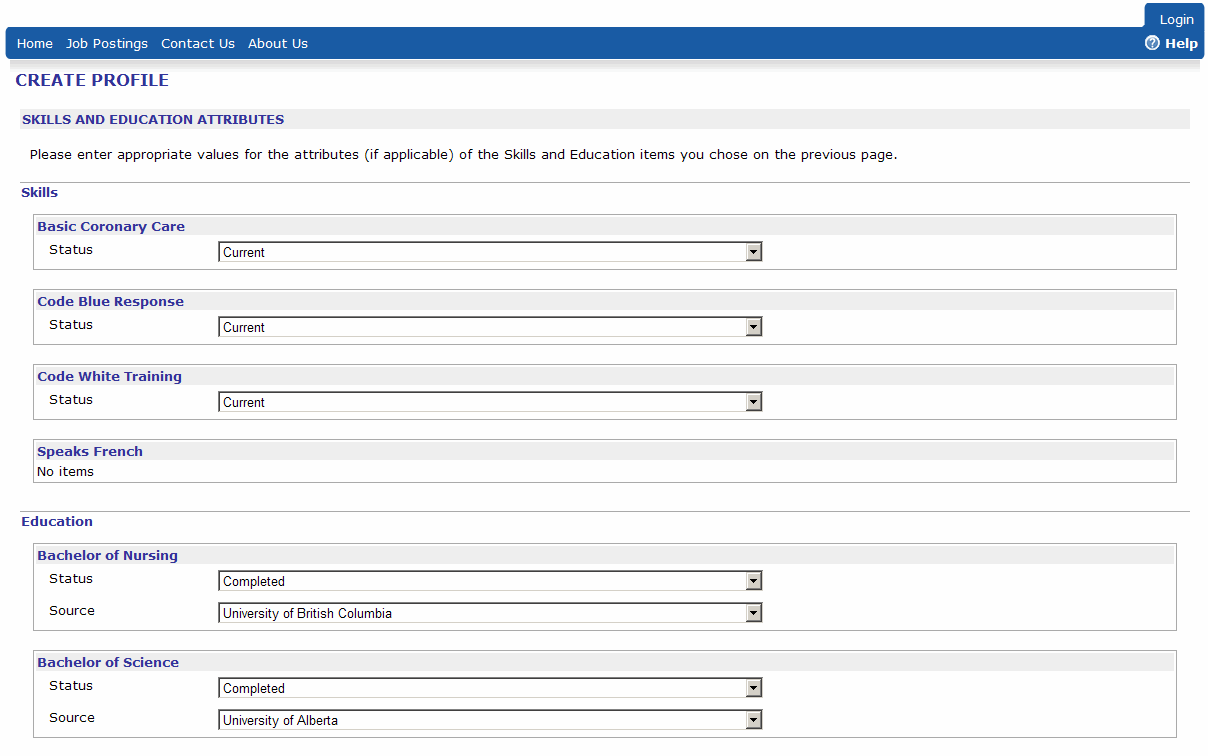 - Add details to the Skill and Education attributes you selected on the previous page.