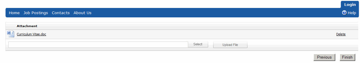 The Attachments page opens, giving you the opportunity to upload a resume, cover letter, or other supporting documents. - Click Select.