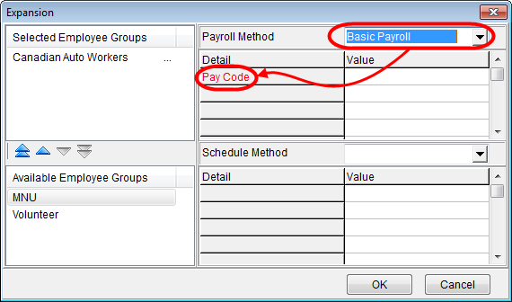 The methods and details selected are applied to the employee groups listed in the Selected Employee Group pane.