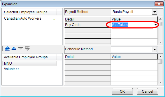 The Expansion dialog opens. - Select a method from the Schedule Method list box.
